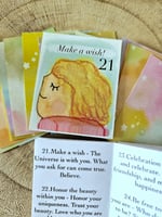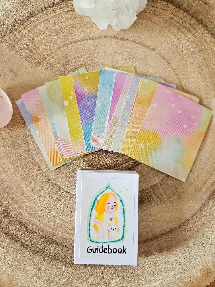 The “Mini Oracle" is totally handmade and makes the perfect gift for you witchy friend or to carry easily in your bag. Includes a 25 card deck paired with a guidebook, featuring channeled illustrations and messages. Inspired by the magic of the inner child, this deck is designed to awaken your inner joy and spark self-discovery.Each card combines together my artwork and intuitive messages, creating a one-of-a-kind tool to deepen your connection with yourself and your intuition. This deck is the result of my soul-inspired art practice and reflective writing, with each card carrying a unique frequency expressed through imagery and words.The Oracle is meant to be used intuitively. To receive guidance, simply center yourself, ask a question, and shuffle the cards to reveal your message. Let it be a tool to support your journey and bring clarity whenever you need it.